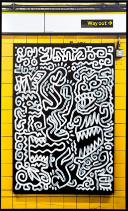 With the brutality of graffiti, the delicacy of calligraphy, and influences ranging from the Cyrillic alphabet to hieroglyphics, Wooghost plays with symbols, often without symbolic intent. He expresses himself on canvas, tarpaulin, and even glass, adapting to both large and small formats according to his desires. Woo advocates for instinctive art. However, some of his recent paintings touch on contemporary societal themes, which the wandering eye can identify through their symbolism.